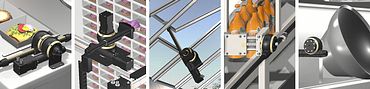 El perfil multifunción permite la conexión en serie de los reductores, ya que se pueden regular los espacios entre elementos o productos. Esta combinación se utiliza a menudo para aplicaciones en la industria alimentaria o del packaging.