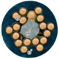 Doch nicht nur das Material, sondern auch die Fertigung spielt hier eine wichtige Rolle. So werden bei sogenannten "kettentauglichen" Leitungen meist die Mäntel auf Schlauch extrudiert gefertigt, und geben so nicht den Halt für das Verseilgebilde, der bei ständigen Biegungen notwendig ist. Das Verseilgebilde kann sich auflösen. So bietet igus® als erster Hersteller von E-KettenSystemen® den sogenannten "zwickelfüllend extrudierten" Mantel an. Hier wird der Mantelwerkstoff zwischen die mit Talkum eingepuderte Aderverseilung gespritzt und stellt sicher, dass sich das Verseilgebilde nicht öffnet, sondern die Adern wie in einem Kanal geführt werden. Das besondere Merkmal bei dieser Fertigungsart ist, dass die Zwischenräume, die bei der Verseilung zwischen den Adern entstehen, durch den hohen Extrusionsdruck vollständig mit Mantelwerkstoff ausgefüllt werden. Damit bildet der Mantelwerkstoff eine kanalartige Führung aus, und die Adern können eine definierte Längsbewegung realisieren. Der Mantel stellt dadurch zusätzlich eine Stützfunktion für die Verseilung dar.