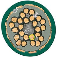 Durch diese Mehrfach-Verseilung der Adern wechseln alle Adern im gleichen Abstand mehrfach den Innen- und Außenradius der gebogenen Leitung. Zug und Stauchkräfte gleichen sich damit um die hochzugfeste Kernkordel aus, die dem Verseilgebilde die nötige innere Stabilität gibt. So bleibt auch bei höchster Biegebeanspruchung die Verseilung stabil siehe Bild 3.